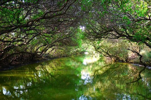 | 四草大眾廟後方排水道的紅樹林區,過去曾是全台最集中的欖李純林,台灣省政府曾在民國77年將這條水道劃為紅樹林保護區,是台南市最佳的紅樹林自然觀察區,在不到兩百公尺的水道旁,分佈著三種紅樹林植物:最多的海茄苳,次為最耐鹽的欖李,紅海欖只有幾棵,在這三種紅樹林植物區與步道間,有水泥護欄圍著。觀察四草紅樹林,可以先從大眾廟後方的小坡上瀏覽全區,俯瞰紅樹林的樹冠層,並能清楚的看見紅樹林間活動的鳥類;紅樹林保護區的魚塭的紅樹林潮溝可以看見招潮蟹有六種,在水道中還可以看到彈塗魚,搭乘廟方的觀光船可以進入紅樹林隧道,體會不一樣的大自然感受。地址:台南市安南區大眾路360號 |