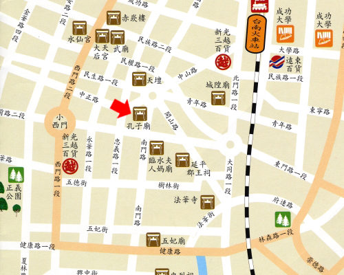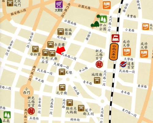 交通:從台南火車站出發,中山路至民生綠園轉至中正路直行。