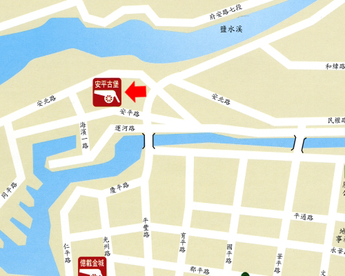 交通:自民生路與中華北路交叉口往運河方向直行,便可抵達安平古堡。